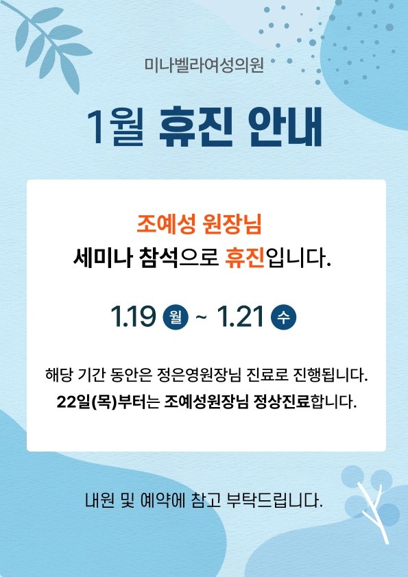 같은 여성으로써 산부인과를 방문하는 모든 여성분들의 마음을 충분히 공감합니다. 늘 내 가족을 대한다는 마음으로 진료에 임하여 왔으며 정확하고 정직한 진료를 약속합니다.